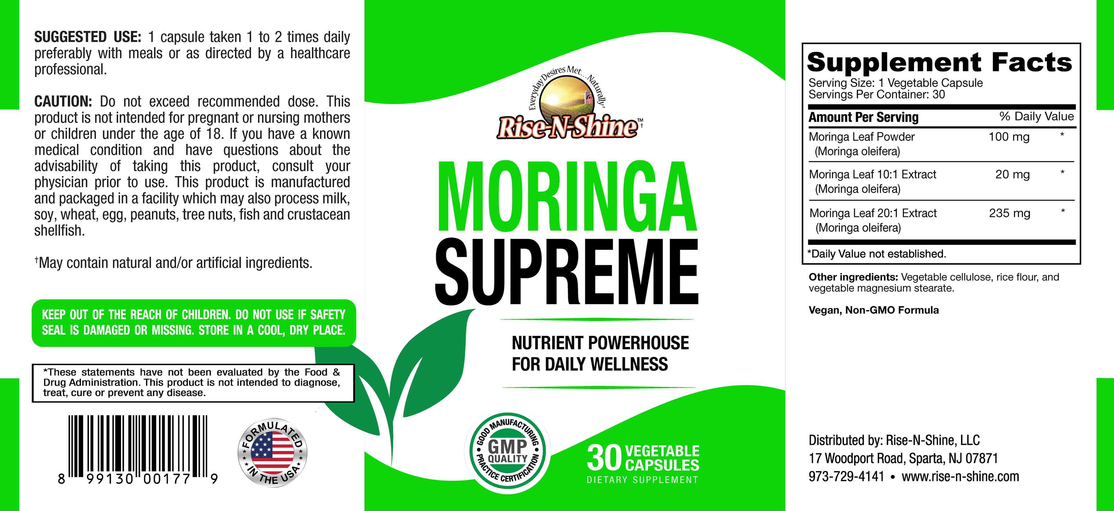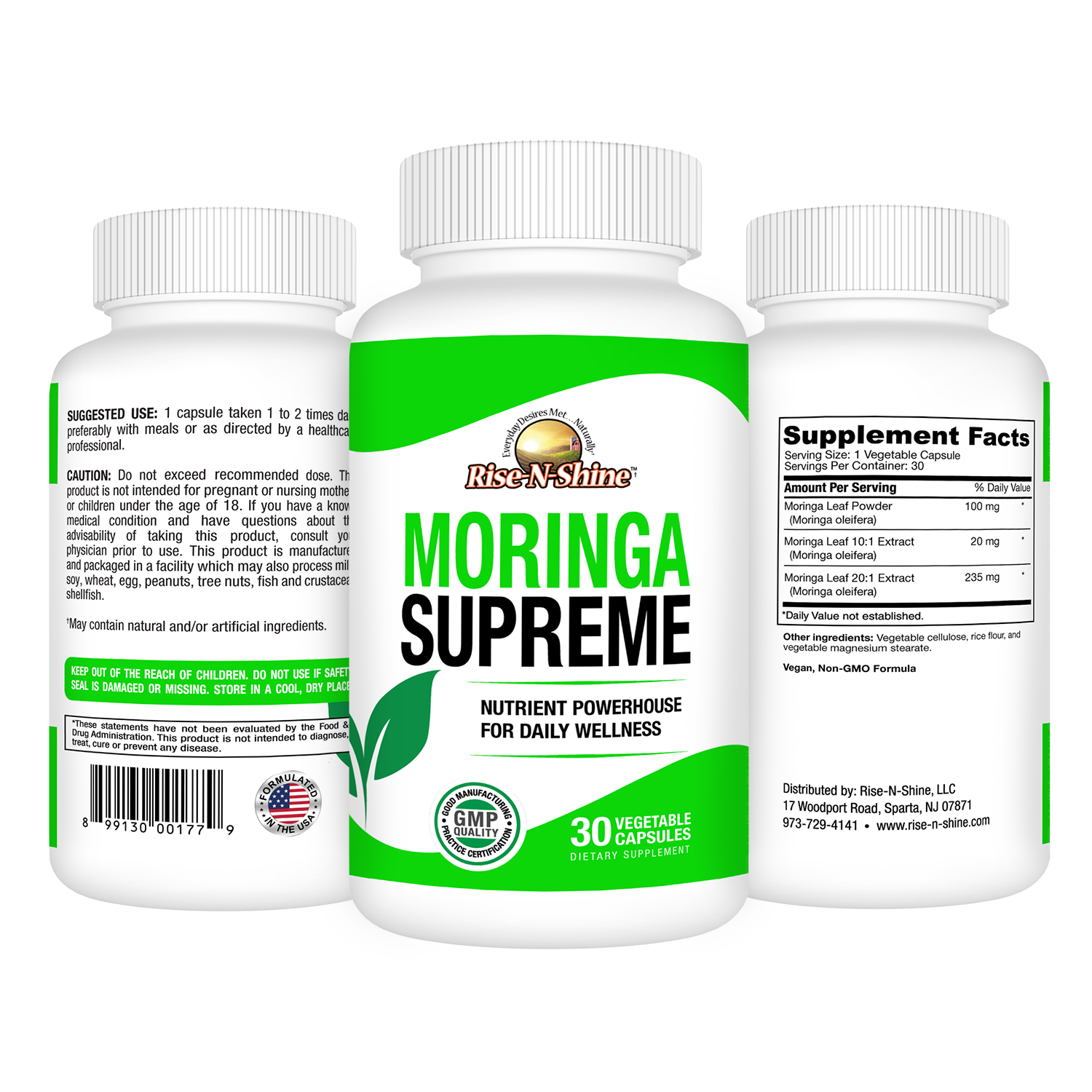 Rise-N-Shine Moringa Supreme – Premium Moringa Oleifera Supplement for Energy, Immunity, and Overall Wellness – 30 Vegan Capsules